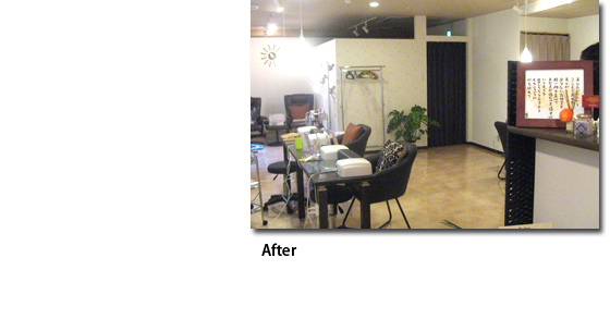 ビルの1室を改装して新規ネイルサロンを開設されるお客様です。 訪れるお客様にくつろいでいただくために、ナチュラルで柔らかい内装に させていただきました。